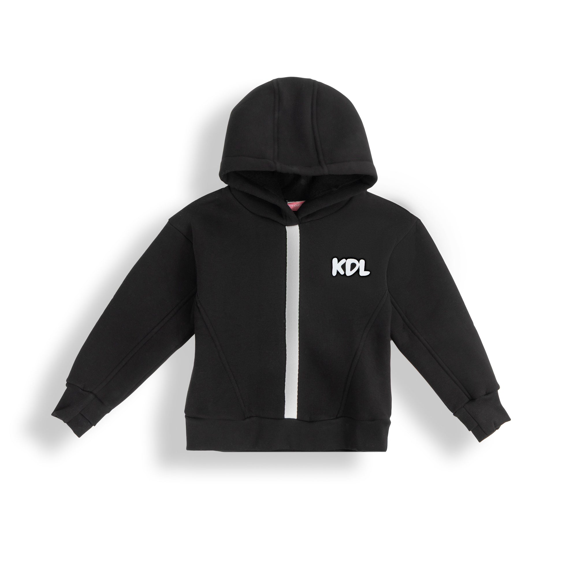 The striking vertical trim at the center front adds a pop of contrast and visual interest. Finished with a snug hood, a soft interior, and our "KDL" print, this is the perfect blend of fashion and function.